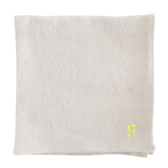 - NAPKIN vintage linen cotton sheet printed fluo yellow or black or white "5", 43 x 43 cm