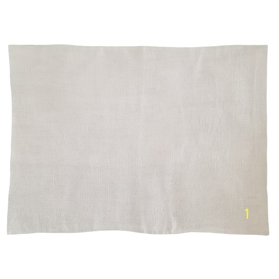 - PLACEMAT vintage linen cotton sheet printed fluo yellow or black or white "1" front side, vintage linen cotton fabric back side, 35 x 48 cm