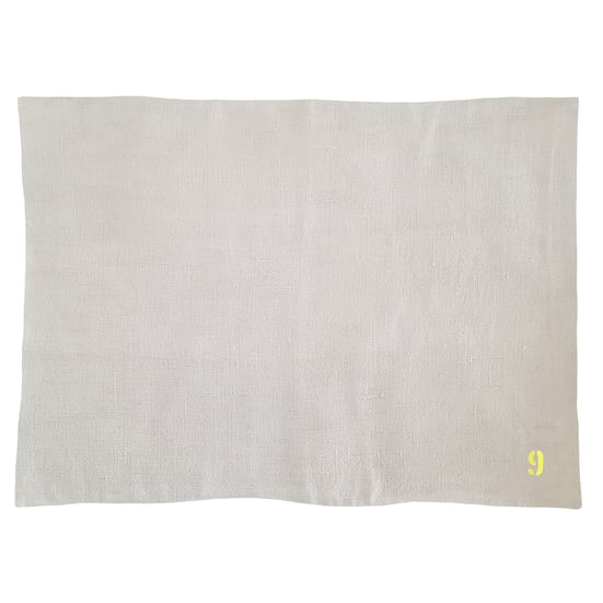 - PLACEMAT vintage linen cotton sheet printed fluo yellow or black or white "9" front side, vintage linen cotton fabric back side, 35 x 48 cm
